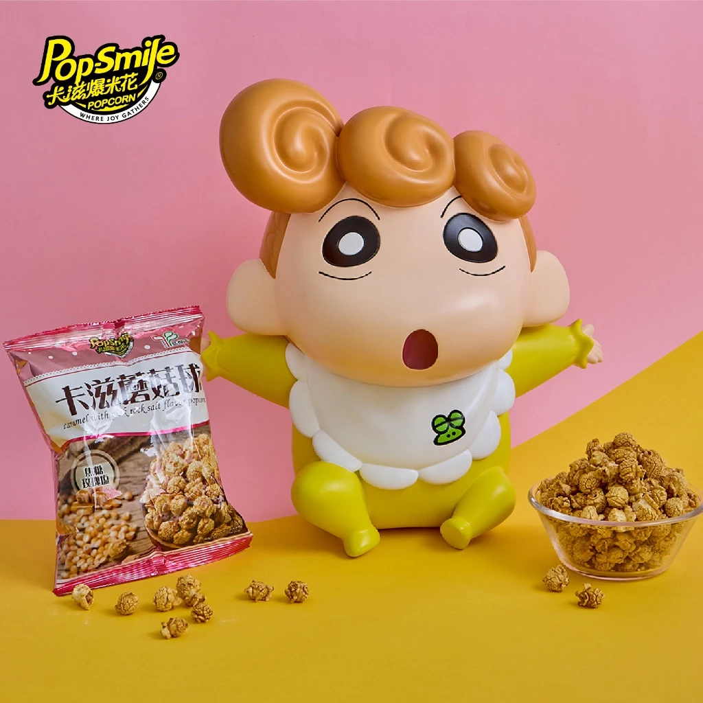 ▼這個造型桶的頂部有開蓋設計,可以當作收納盒使用,裡面不僅能收納小物,還能當個存錢筒!想像一下,每次把零錢放進小葵的造型桶裡,心情是不是瞬間變好?而且裡面還附有超級好吃的卡滋焦糖玫瑰鹽風味爆米花,香甜中帶著一點鹹香,讓你一邊看小新,一邊享受美味的零食,簡直是幸福滿滿!